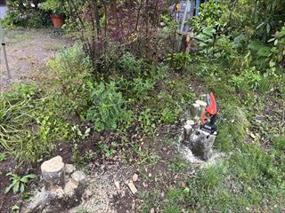 先週はリフォーム作業の一環で、電動ミニチェーンソーを使ってお庭の木を剪定してきました。