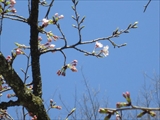 倉吉市の打吹公園内の標準木に5輪花が咲き、