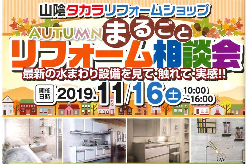 山陰タカラリフォームショップAUTUMNまるごと リフォーム相談会が11月16日土曜日 タカラスタンダード米子ショールー