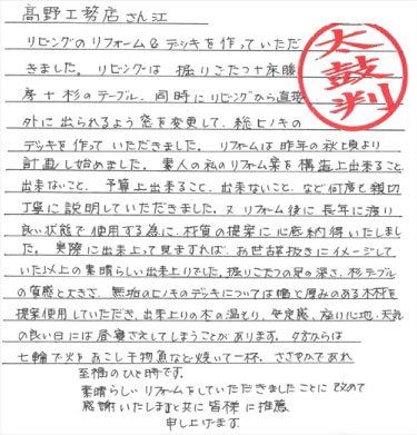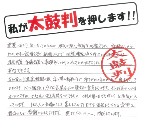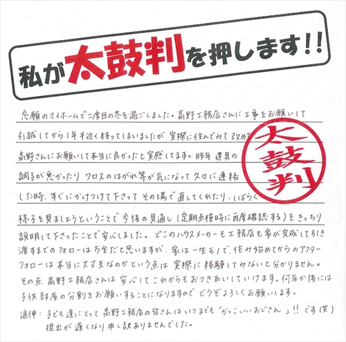 一生安心してお付き合い出来る工務店