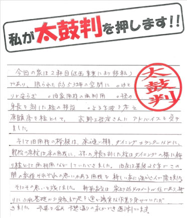 予算を含め、予想通りの家ができ感謝しています。